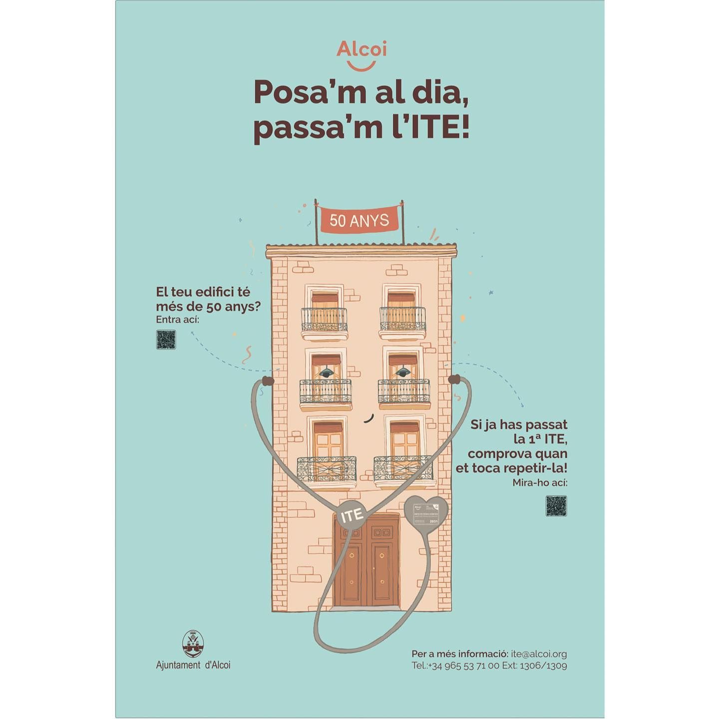 Didi Vent Il·lustra la campanya publicitària para l'Ajuntamient d'Alcoi "Posa'm al dia, passa'm l'ITE!"
