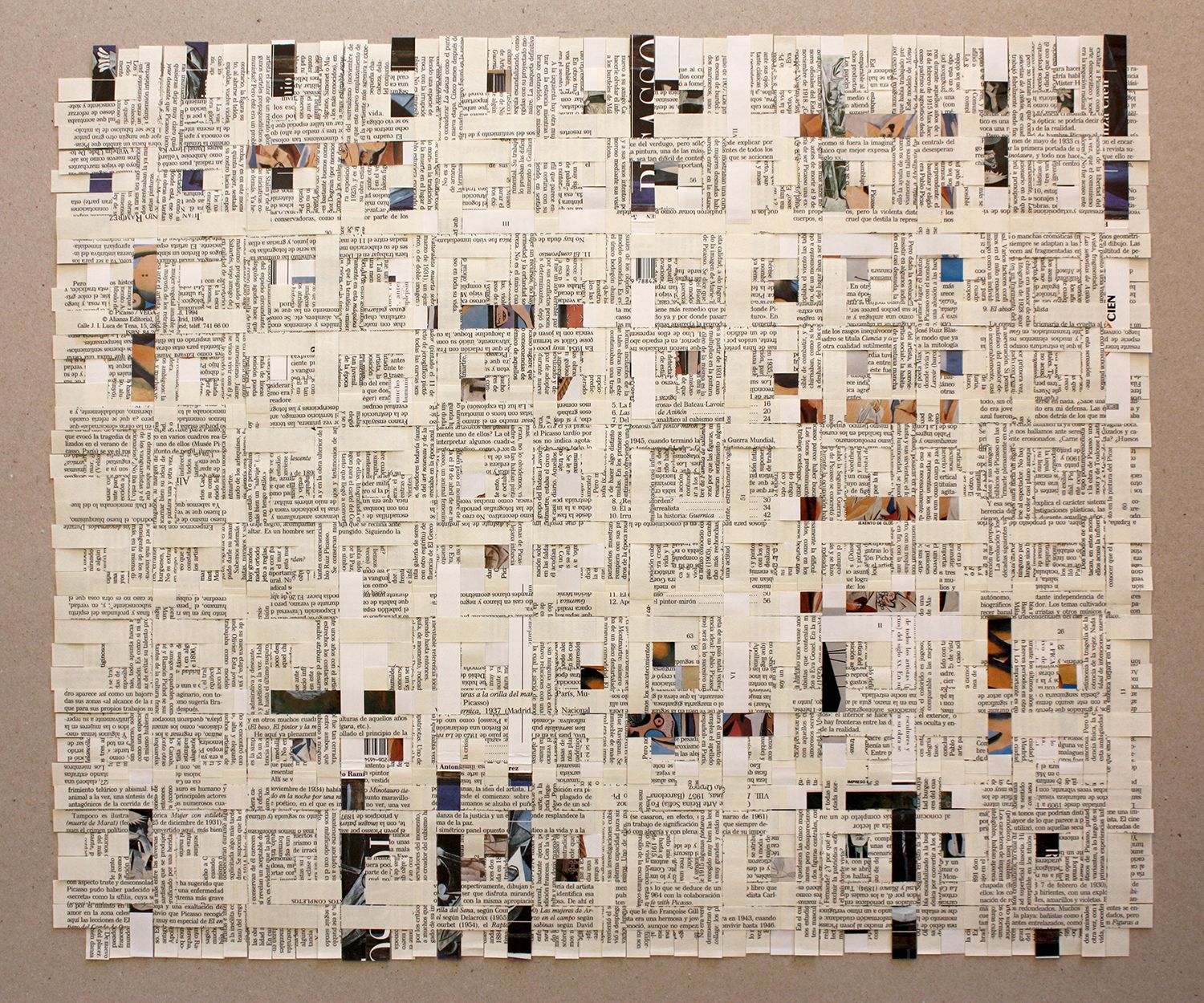 Tècnica: Tejido de ligamento sarga pata de gallo (Libro usado: Picasso de Juan Antonio Ramirez. Ed. Alianza, Colección Alianza Cien, Madrid. 1994).