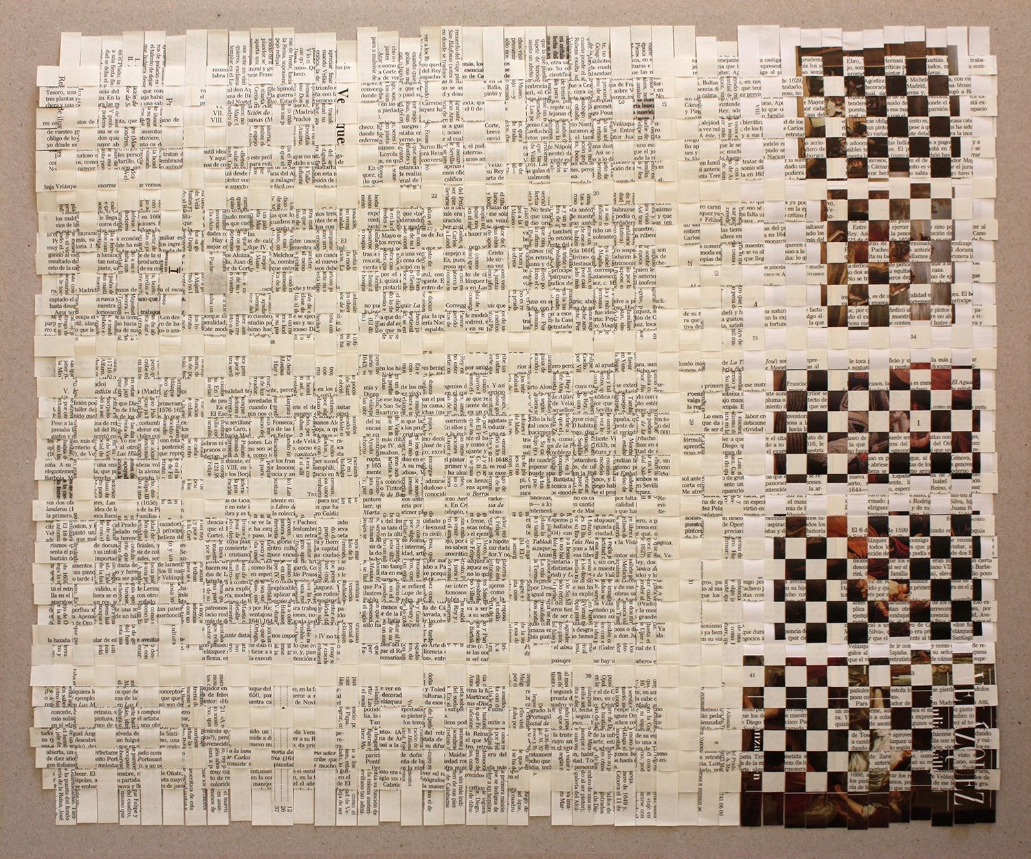 Técnica: Tejido de ligamento tafetán (Libro usado: Velázquez de Julián Gallego. Ed. Alianza, Colección Alianza Cien, Madrid. 1994.).